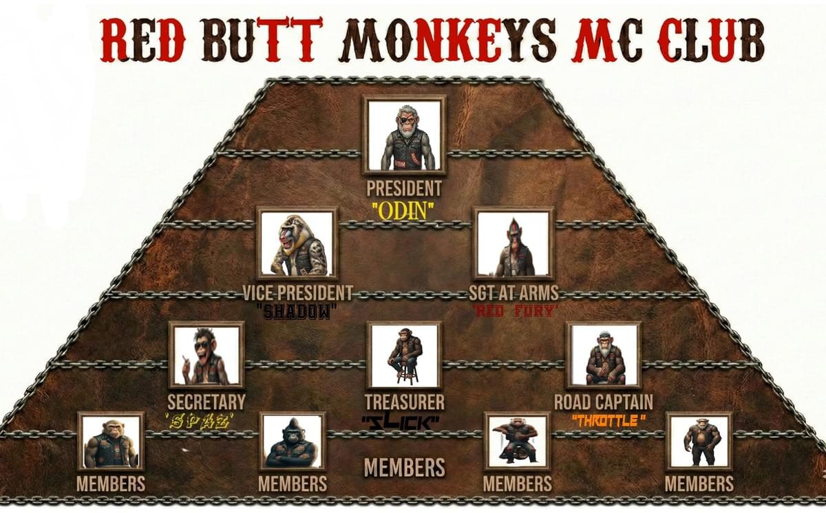 Dive right into the wonderful world of the RED BUTT MONKEYS MC .engage with the growing RBM COMMUNITY .we have some pretty BIG PLANS and were hoping that you wi